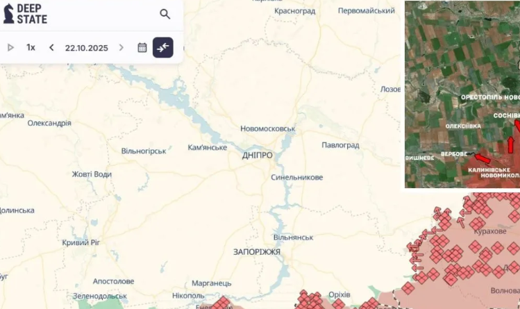 Ворог просувається Дніпропетровською областю, в районі межі із Запорізькою областю. Про це свідчать дані DeepState. «Червона зона» просунулася в районі Привілля,